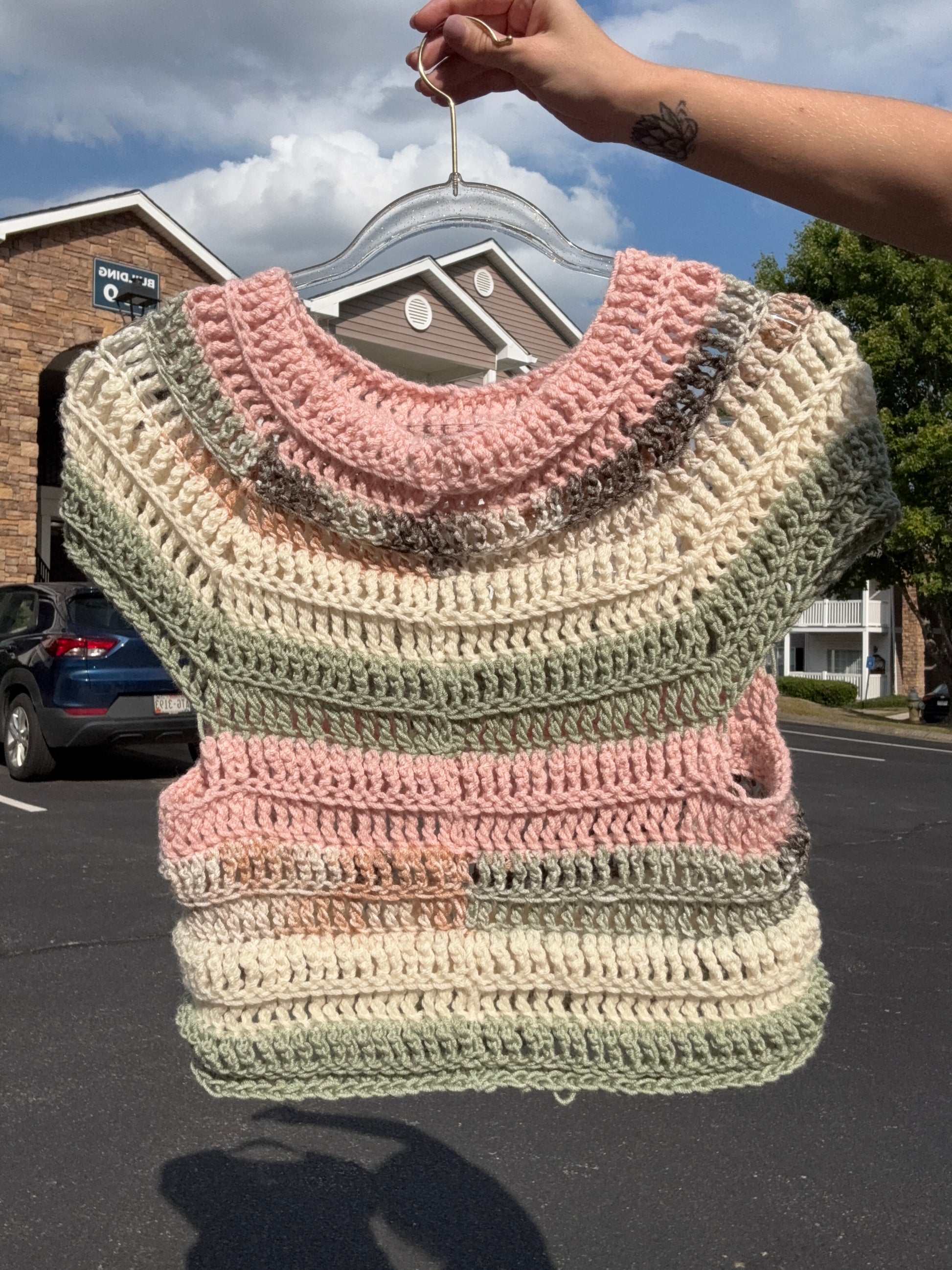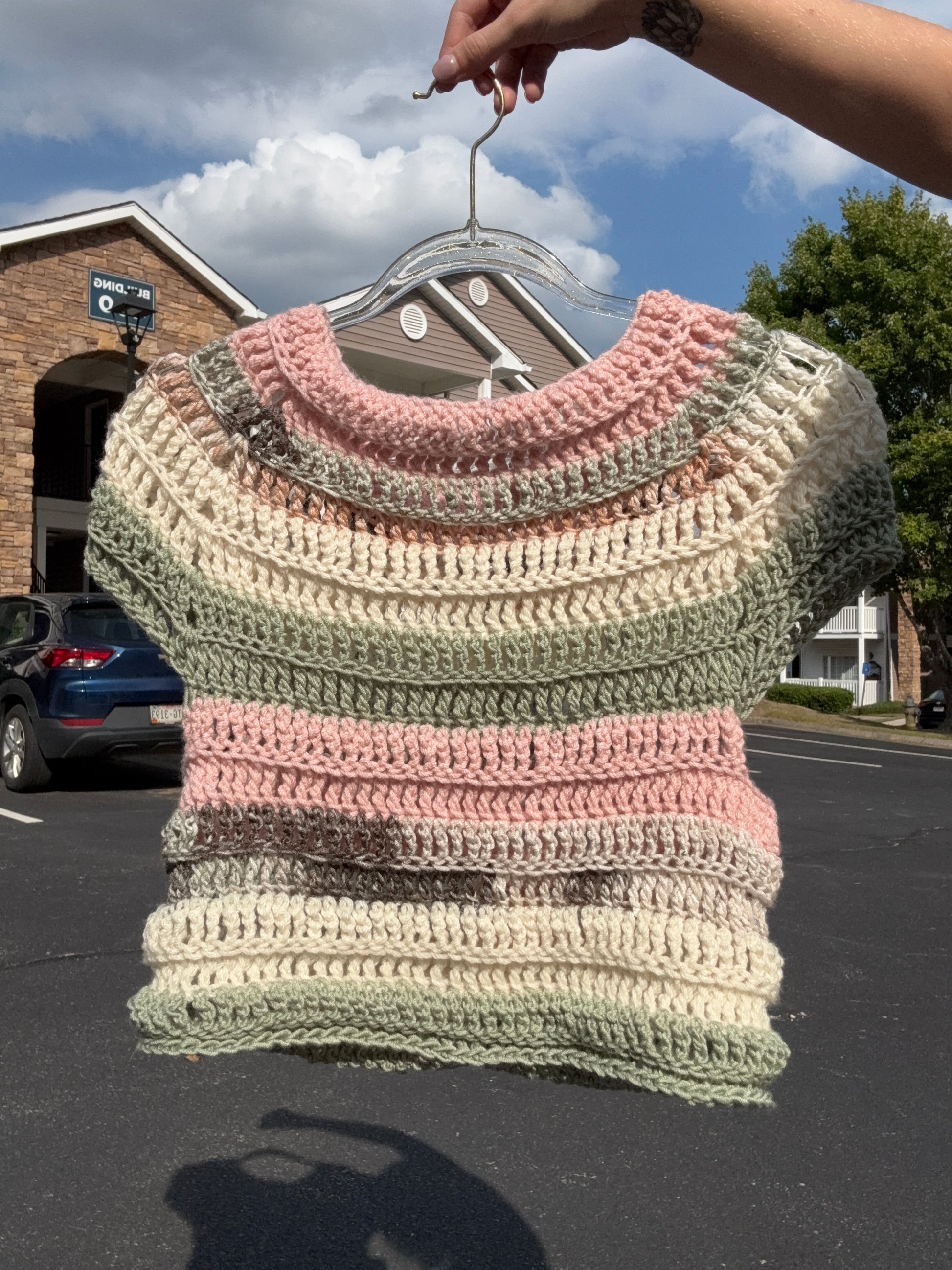 This top was made entirely from scrap yarn that was leftover from previous projects, best fits a small / medium.